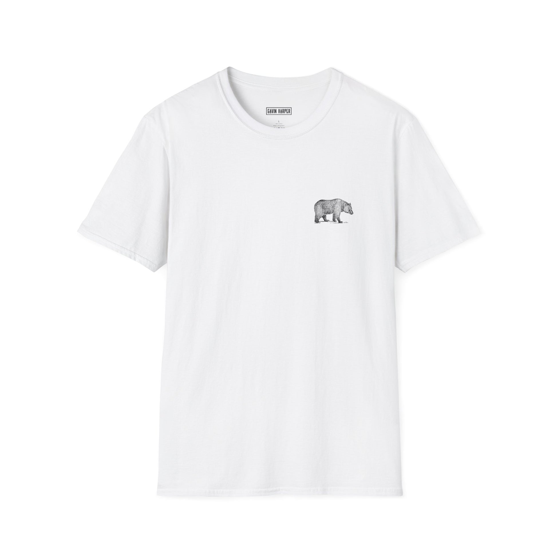Classic fit, lightweight, white t-shirt with printing on the front. 100% ring-spun, comfortable cotton.